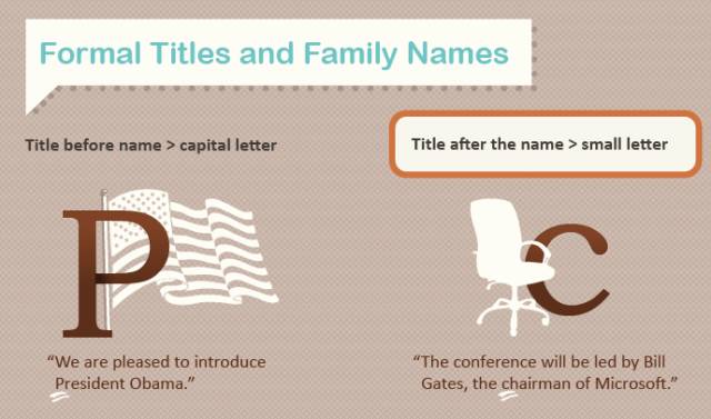 而当头衔和称呼在名字之后就不用首字母大写,如: