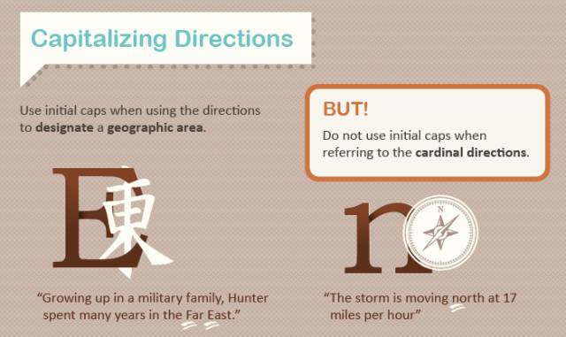 方向指示的有时候需要大写,有时不需要。当没有特定的、明确的方向,它只是具象的概念时,不需要首字母大写,如:
