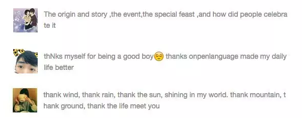 Make a small speech about what you're thankful for: 每人说段话,说自己感恩什么
