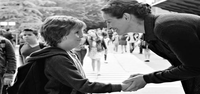 这样的解读,也没有问题。从小说到电影,《奇迹男孩》似乎也在用很大篇幅告诉我们,就要读5年级的奥吉,是怎么走出家门走进比彻中学、又怎么越过因外貌招致的歧视这一关,从有一个好同学开始,渐渐成为比彻中学许多人的好朋友,最终成为比彻中学的年度优秀学生的。这样的脉络,像是坐实了《奇迹男孩》就是一个脸部有着严重缺陷的奥吉如何不畏歧视、不怕讥讽地走进学校、走向社会的励志故事。