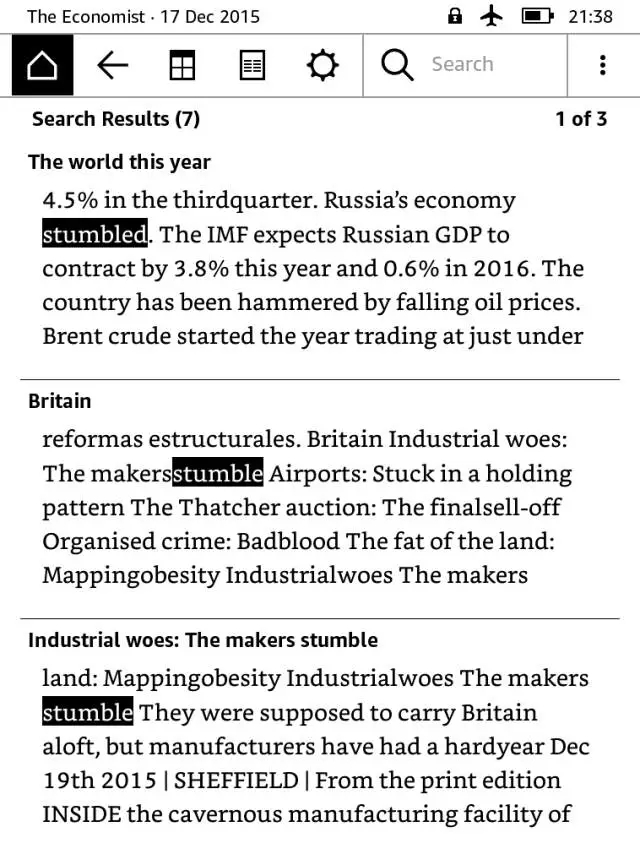 我之前做过一个词频统计,发现即使是较为低频的柯林斯一星词和二星词,它们在外刊中出现的频率也不低。比如对于 stumble 这个二星单词,仅在某一期经济学人杂志中就出现了七次之多,读完这期杂志后想不记住它都难。