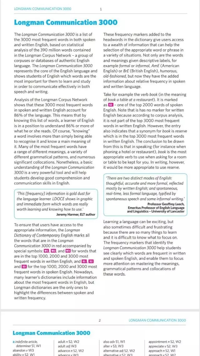 有哪些常见词值得注意呢?朗文当代英语高级词典中给出了一个包含3000词的词表,这是朗文根据计算机统计结果给出的在口语和书面英语中使用频率最高的3000个单词。